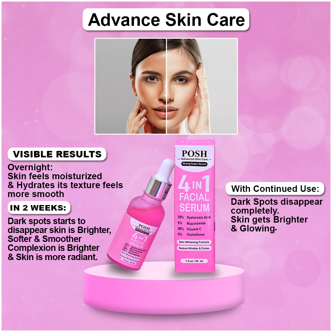 Elevate your skincare routine with the POSH 4-IN-1 Super Skin Glowing Serum—where science meets luminosity.