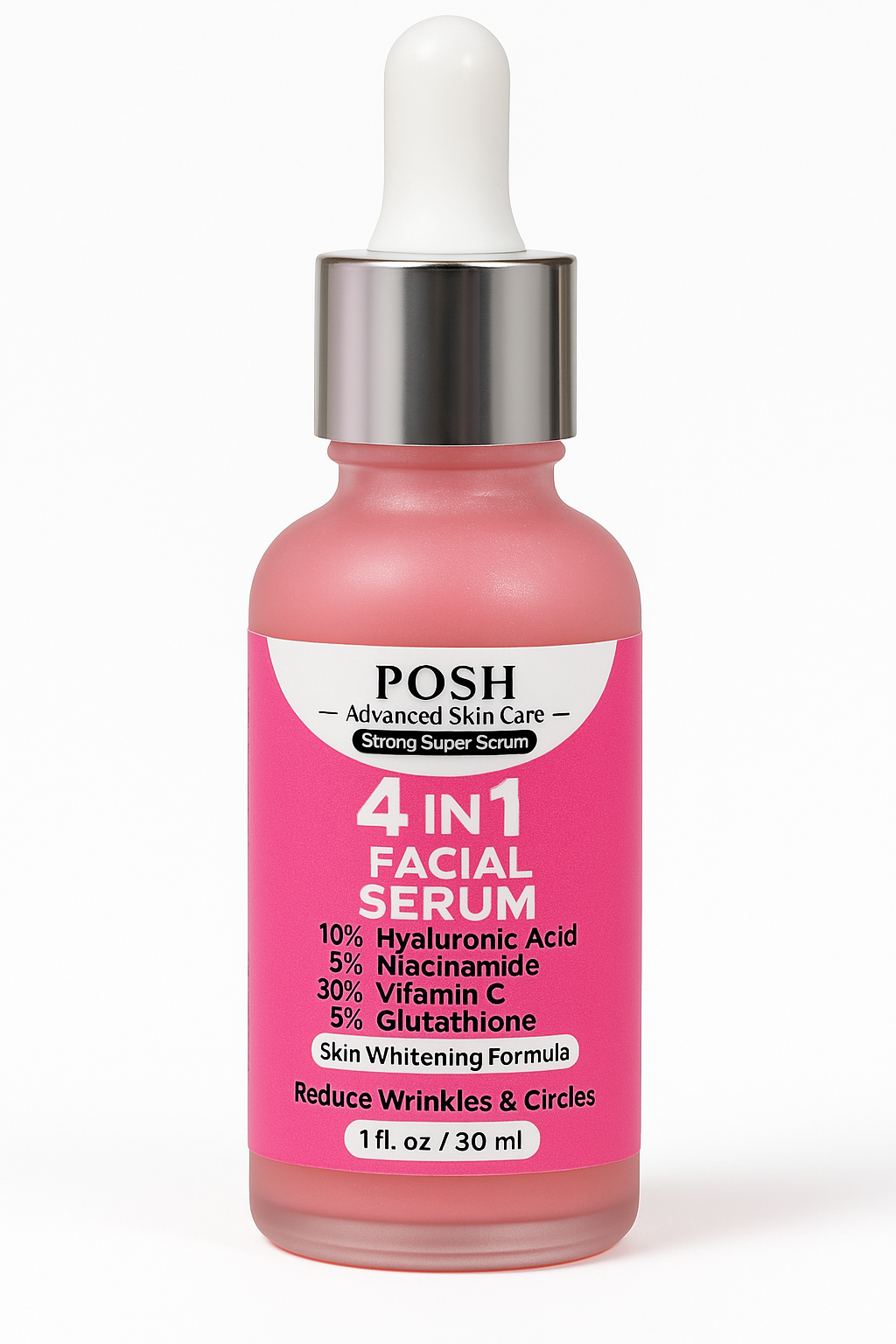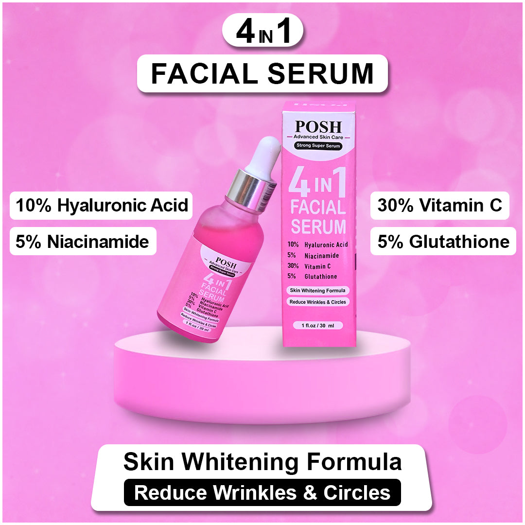 Introducing the POSH 4-IN-1 Super Skin Glowing Serum, an elite skincare formulation designed to transform your complexion into a radiant, luminous masterpiece. This advanced serum is a harmonious fusion of scientifically proven ingredients, meticulously crafted to deliver unparalleled brightening, hydration, and rejuvenation for all skin types. Elevate your skincare ritual with this powerhouse serum that targets multiple concerns while unveiling a naturally glowing, youthful visage.