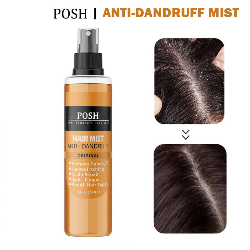 Say goodbye to flakes and itching with POSH Anti-Dandruff Hair Mist - the refreshing, effective solution for a healthier scalp and beautiful hair.