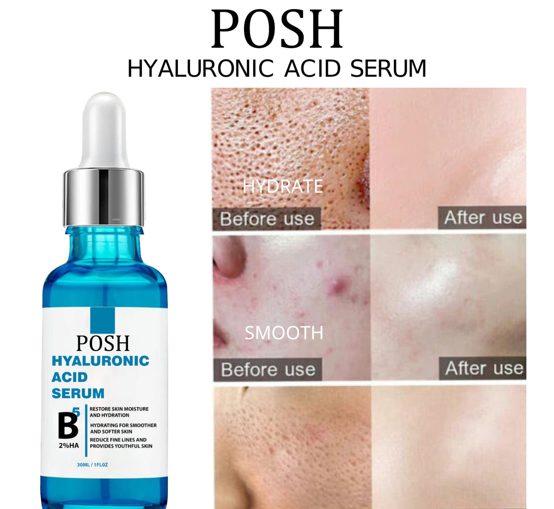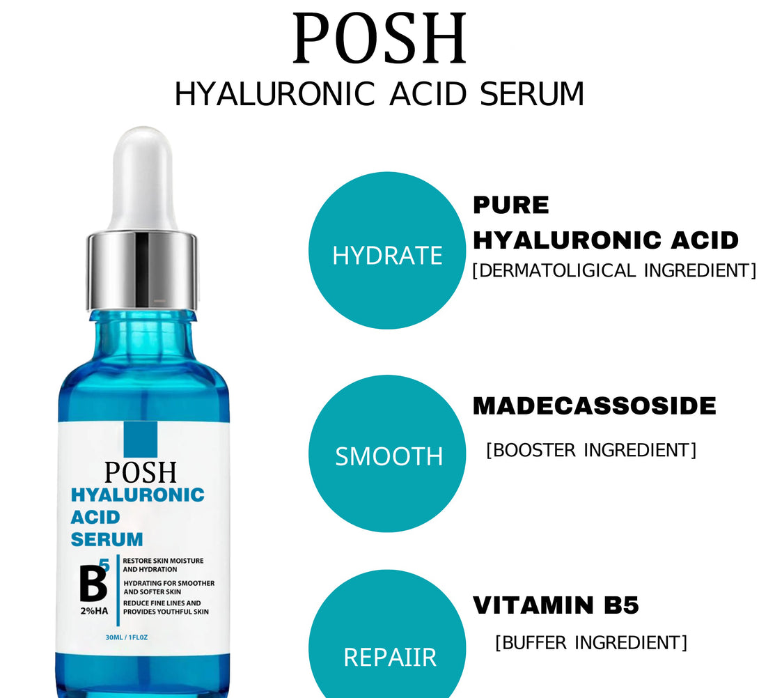 Discover the power of professional hydration with POSH Hyaluronic Acid Serum for visibly younger, radiant skin.